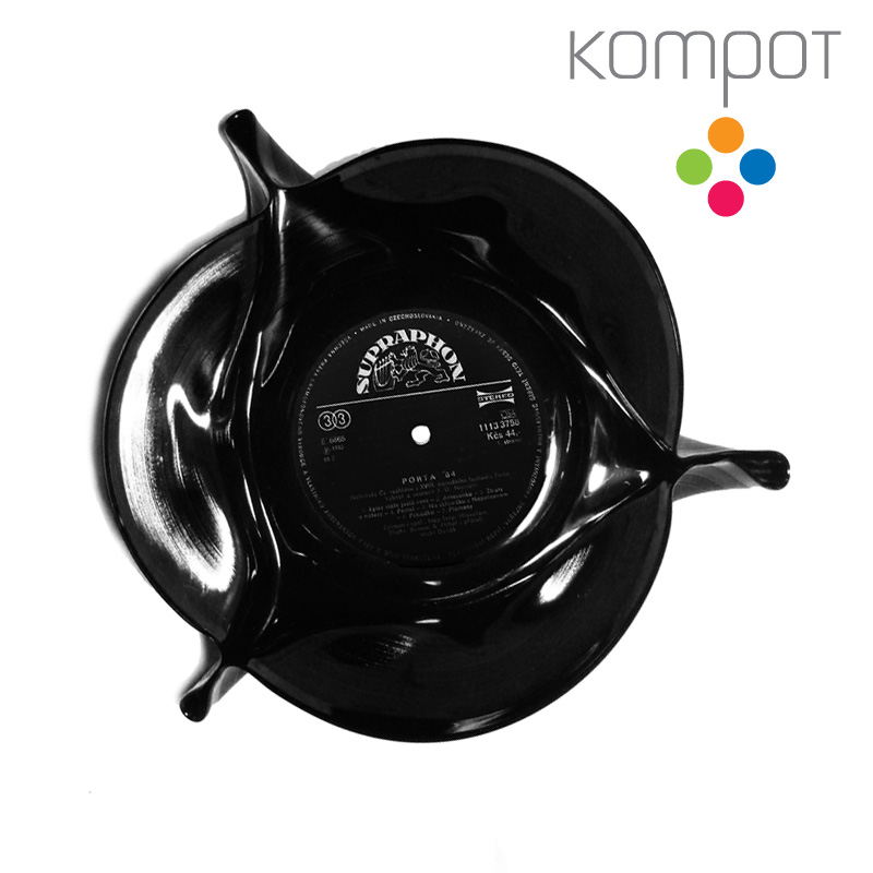 Miska recyklovaná ze staré vinylové desky středem.